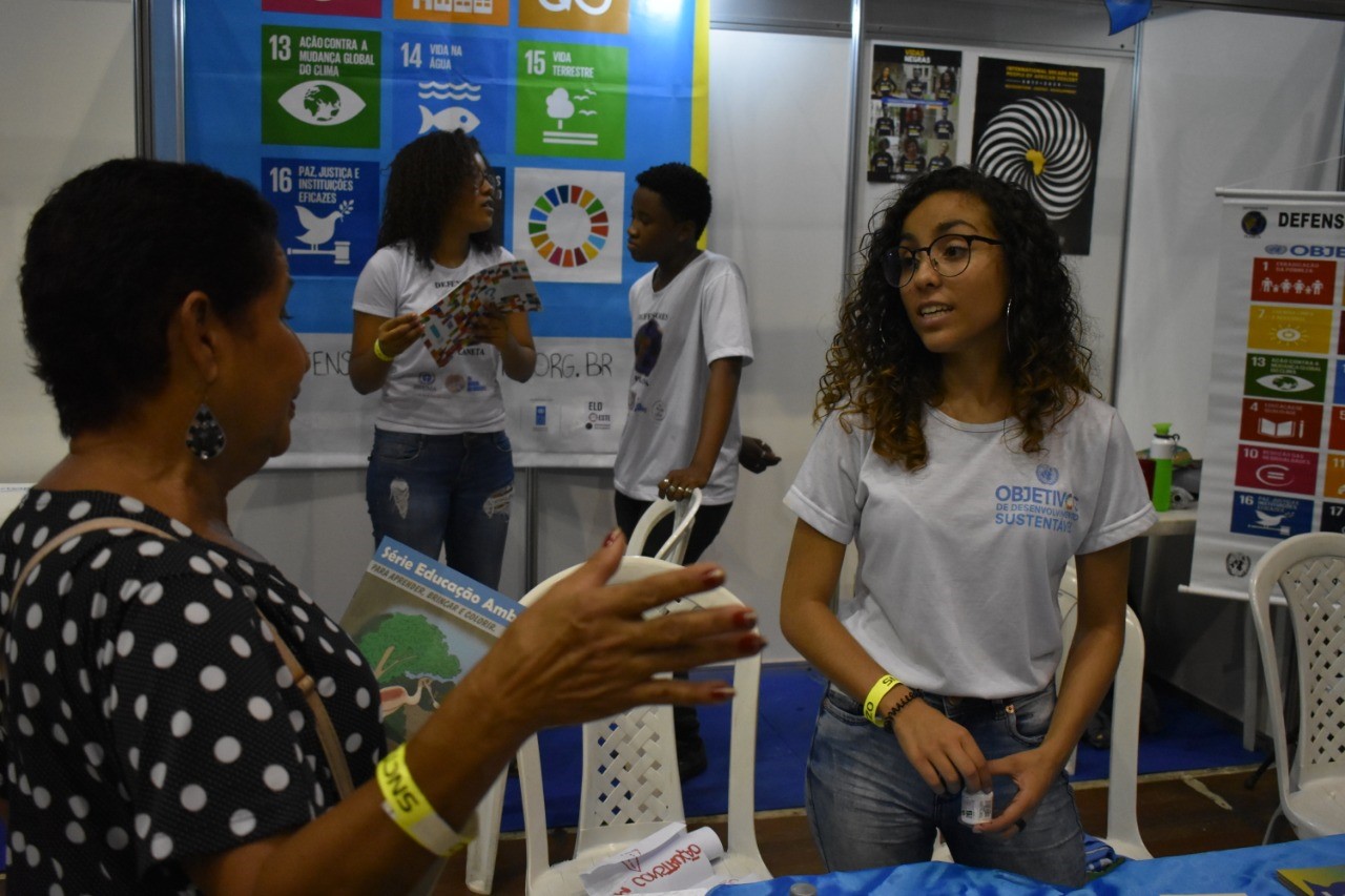 Juventude da defensores do planeta levando informação sobre a agenda 2030 durante semana nacional de ciência e tecnologia].