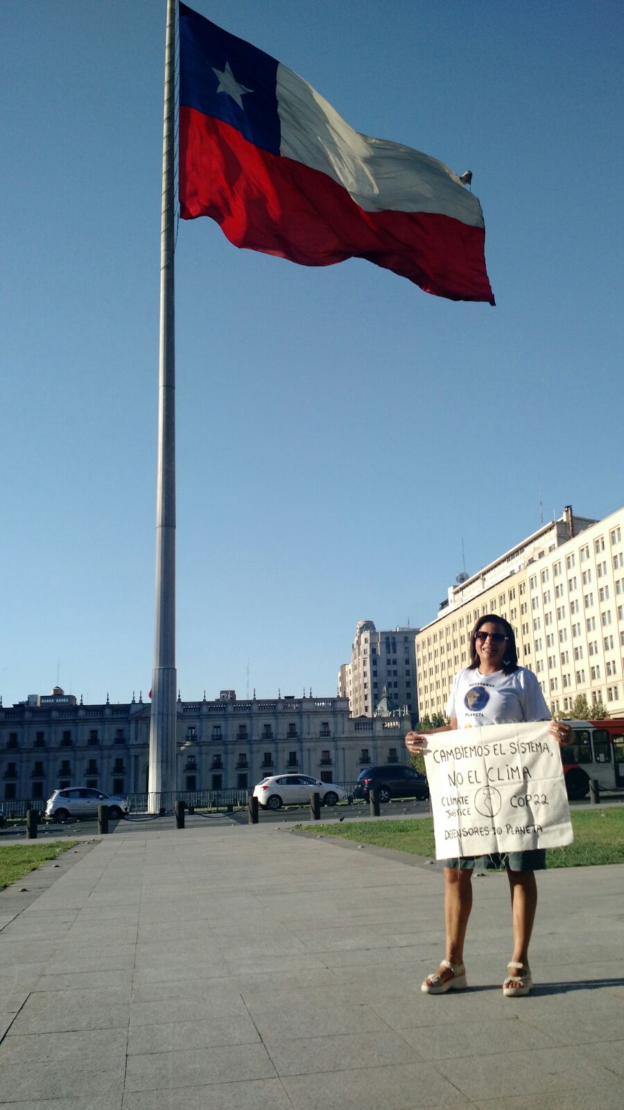 Em encontro no Chile, nossa diretora de projetos Ana Claudia Ferreira, esteve em frente ao palácio do governo do Chile para solicitar ações da presidente Michelle Bachelet, contra a poluição atmosférica na cidade de Santiago, que é uma das mais poluídas da América do sul, a Defensores do planeta encaminhou uma carta ao Pablo Badenier ministro de meio ambiente do chile, solicitando uma posição afim de conter os alto níveis de poluição atmosférica em Santiago e ainda solicitamos maior rigor do governo chileno na COP-22, na qualidade do ar da América do sul, Ana teve outras agendas na capital chilena, como ações de missões em várias cidades e uma reunião na sede da CEPAl – Comissão econômica para América latina da ONU, para trocar informações sobre desenvolvimentos sustentável e projetos, “A bela e majestosa cordilheira dos andes sendo apagada no horizonte, por um sistema irresponsável que polui o ar da bela Santiago, é lamentável tanta poluição”, afirma Ana Claudia Ferreira.