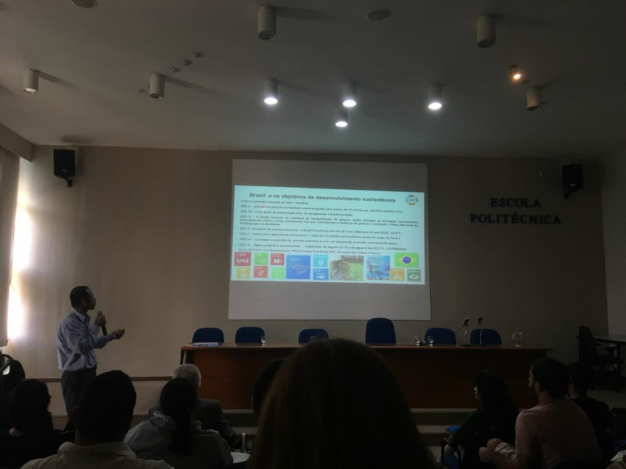 Nesta semana, durante os dias 21 a 24 de agosto, aconteceu a XIII UFRJ Ambientável na Escola Politécnica da UFRJ. O evento que ocorre desde 2005, é organizado anualmente pela comissão dos alunos de engenharia ambiental da Universidade Federal do Rio de Janeiro – UFRJ. A oitava edição trouxe neste ano um tema que vem sendo debatido internacionalmente pelos diversos países e organizações mundiais. Com o tema “Brasilidade com Ciência – Trilhando Caminhos à Luz dos 17 Objetivos de Desenvolvimento Sustentável da ONU”, o evento colocou como pauta principal os Objetivos de Desenvolvimento Sustentável. A semana foi separada em quatro temas principais que reuniram especialistas, como a bióloga Luthiene Dalanhese e o biólogo Bruno Meurer do Projeto Tartarugas Marinhas, em mesas redondas, palestras, minicursos e nas mais diversas atividades, para falar sobre Saneamento e Recursos Hídricos (ODS6), Energia (ODS7), Biomas e Florestas (ODS13 e ODS15). Reuniu também projetos importantes que apresentaram sua atuação no território carioca, tais como os Projeto Tartaruga Marinha que atua no litoral do Rio de Janeiro, o Projeto de Extensão Estuda Maré e o Projeto de Extensão em Agroecologia Capim Limão. O evento que teve sede o Centro Tecnológico da UFRJ reuniu discentes que participaram de formações em oficinas e minicurso, visitas técnicas e também contou com uma mini-feira de exposição para que os alunos pudessem informar-se o máximo possível sobre a pauta abordada. E é claro que a Defensores do Planeta não poderia ficar de fora dessa! No primeiro dia de evento a Defensores integrou a mesa redonda de abertura para introduzir a Agenda 2030 nas expectativas, atuação e o papel dos países e sociedade civil para alcançar as metas estabelecidas pela ONU. Abordar os ODS em eventos como este, faz parte do nosso compromisso principal para alcançar o desenvolvimento sustentável global.